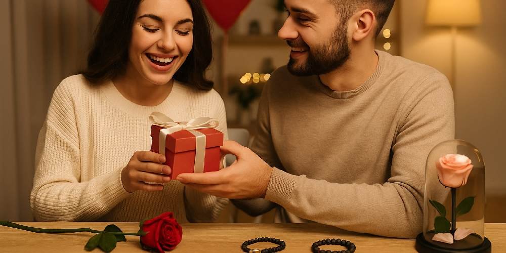 Pourquoi pas un bracelet couple personnalisé ou une rose éternelle…