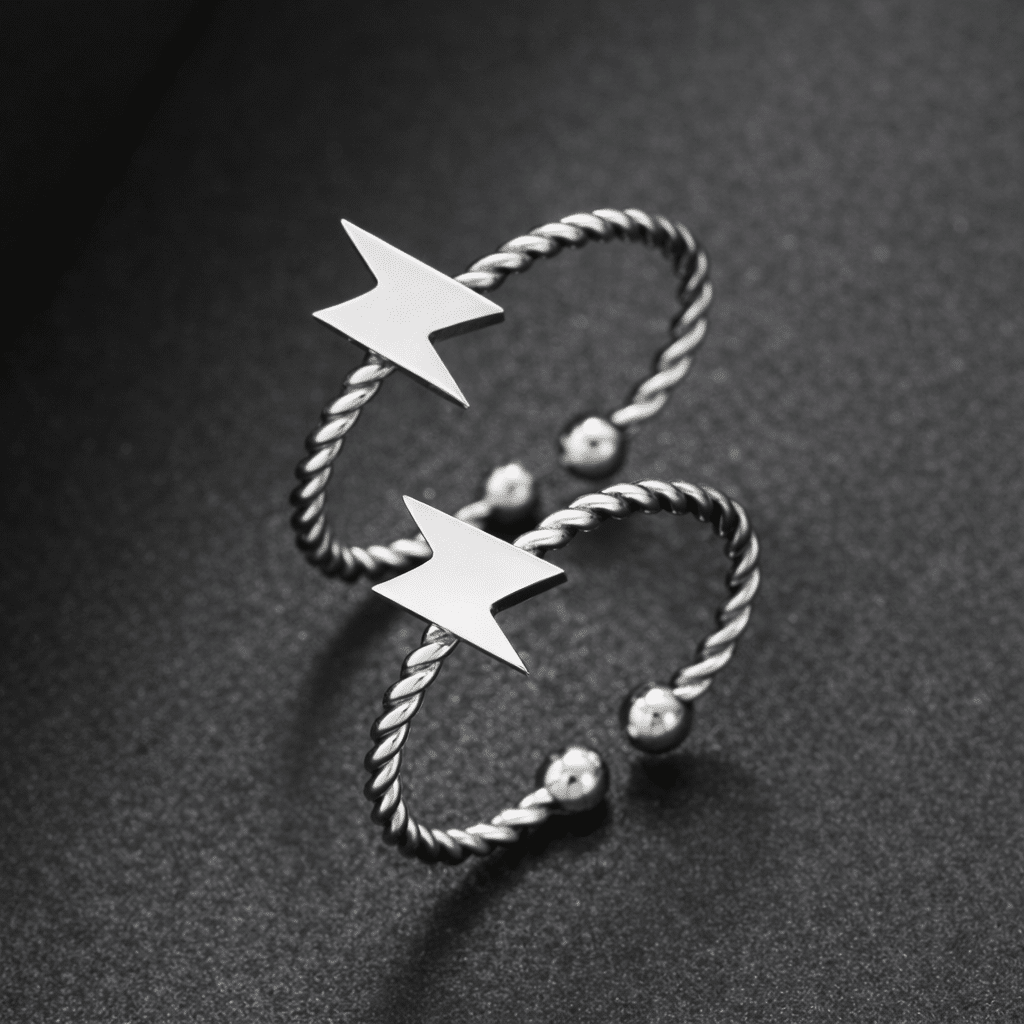 La bague assortie couple geek se démarque par son design unique en forme d’éclair, symbole de force et d’énergie.