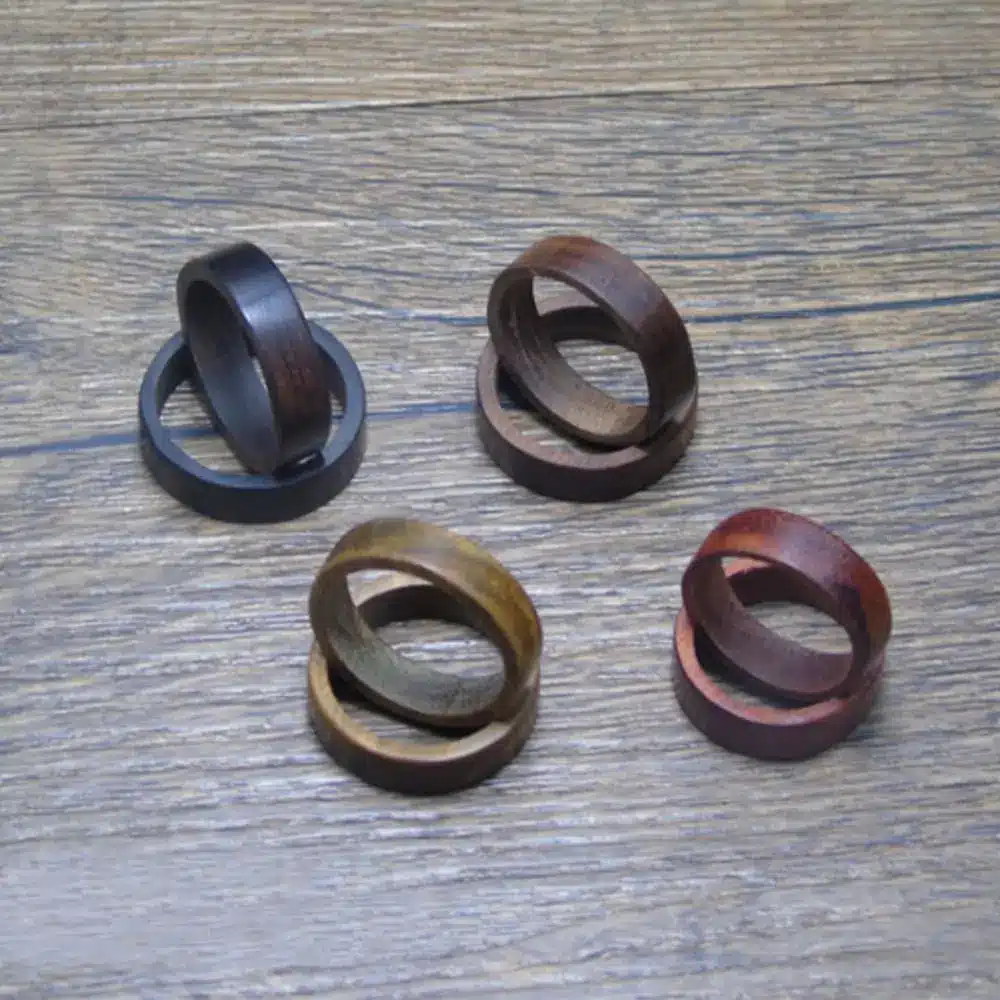 Ce lot de deux bagues en bois véritable offre une alternative naturelle aux bijoux classiques.