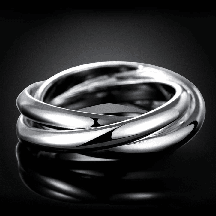 Ce jeu d’anneaux symbolise l’unité, l’équilibre et la force d’un lien durable, ce qui en fait un bijou parfait pour représenter une relation forte ou un engagement.
