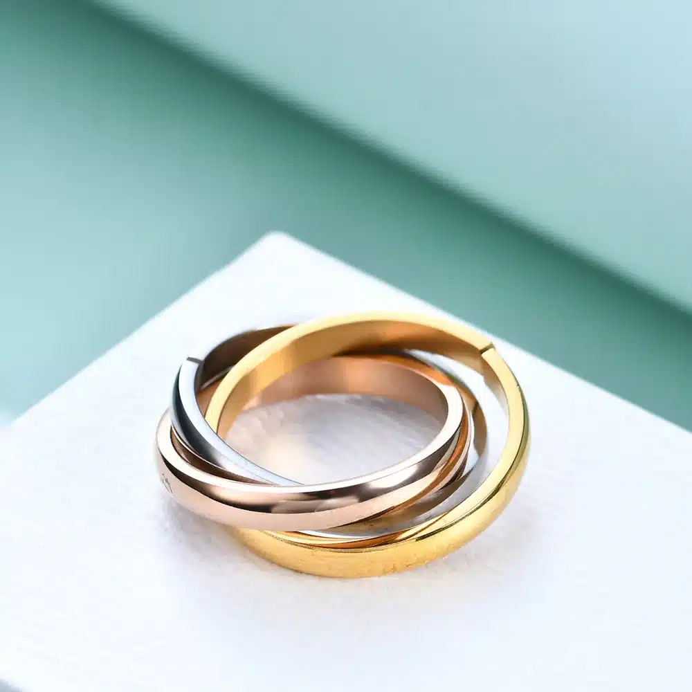 Cette bague couple 3 anneaux s’accorde avec toutes les tenues, du casual au habillé, et se combine même en stacking avec d’autres bijoux pour créer un look unique.
