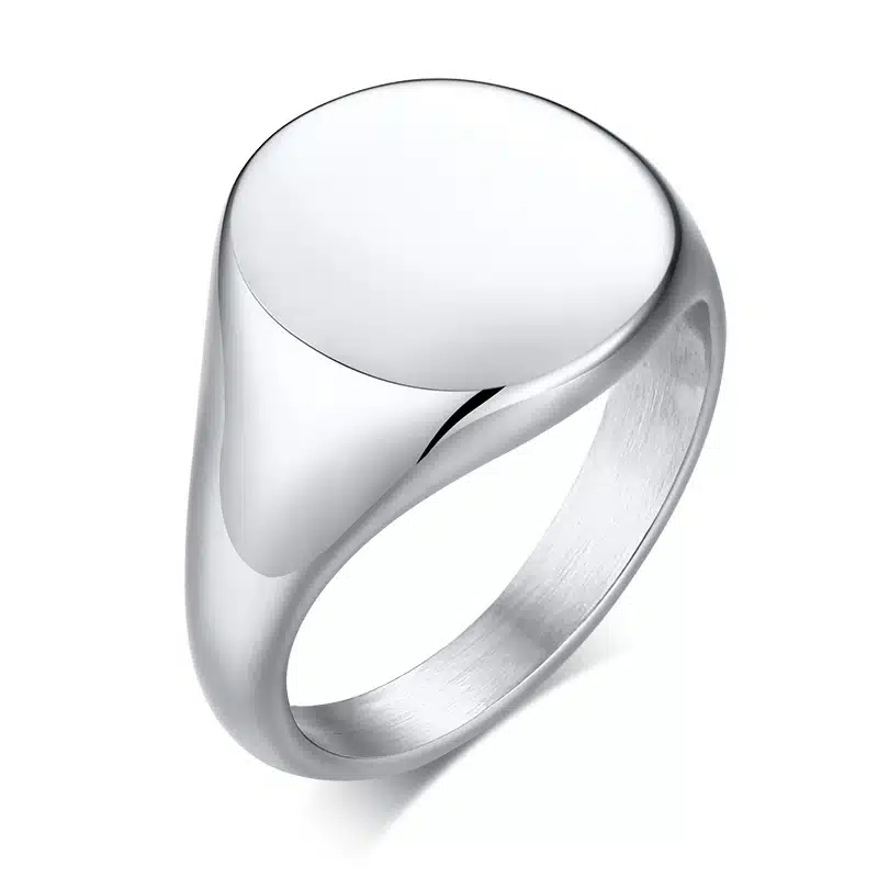 Chaque bague adopte un design de chevalière moderne avec une surface ronde et lisse, parfaite pour recevoir une gravure personnalisée.