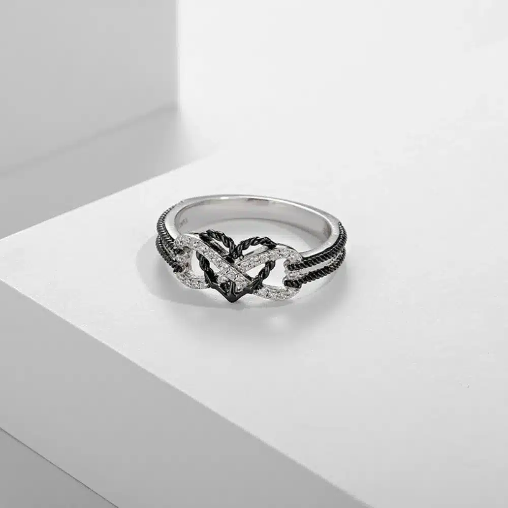 Motif cœur entrelacé avec un symbole infini, la bague couple coeur infini femme affiche un message d’amour clair tout en gardant un style fin et facile à porter.