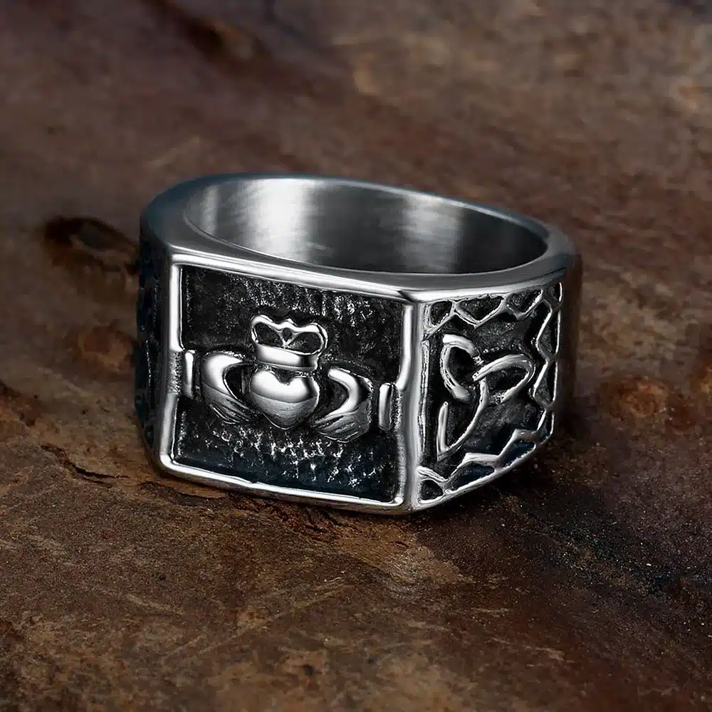 Les motifs gravés sur les côtés ajoutent un rendu travaillé et donnent plus de caractère à la bague.
