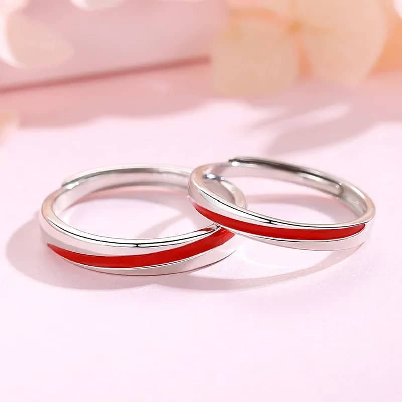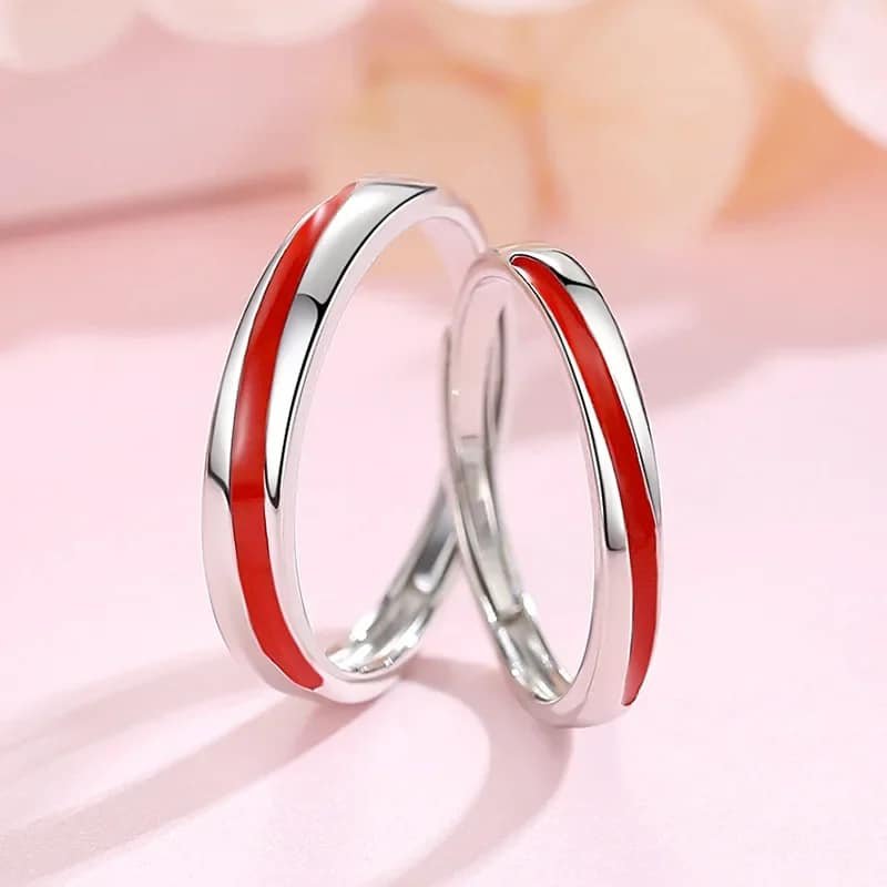 La bague couple rouge s’adapte à tous les doigts grâce à sa taille ajustable.