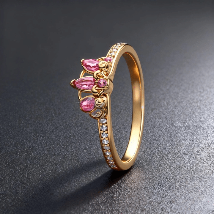 Les pierres en zirconium rosées et brillantes créent un contraste doux avec la monture dorée et apportent un éclat délicat qui attire le regard.
