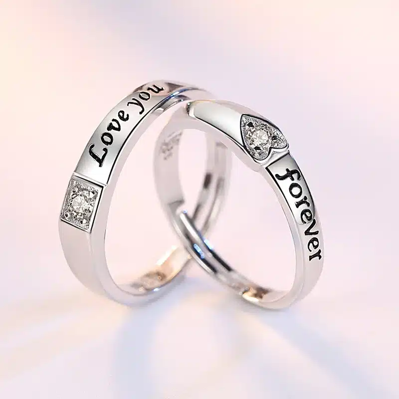Cette bague de couple argentée ajustable est une belle idée cadeau pour marquer une promesse, un anniversaire ou un moment fort dans une relation.