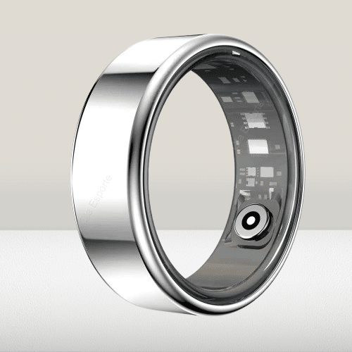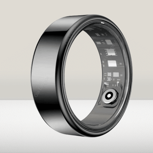 La bague de couple intelligente combine un design minimaliste et une technologie de pointe. Conçue en titane avec intérieur en résine, elle est étanche IP68, résistante à la transpiration et disponible en plusieurs tailles de 54 à 68.