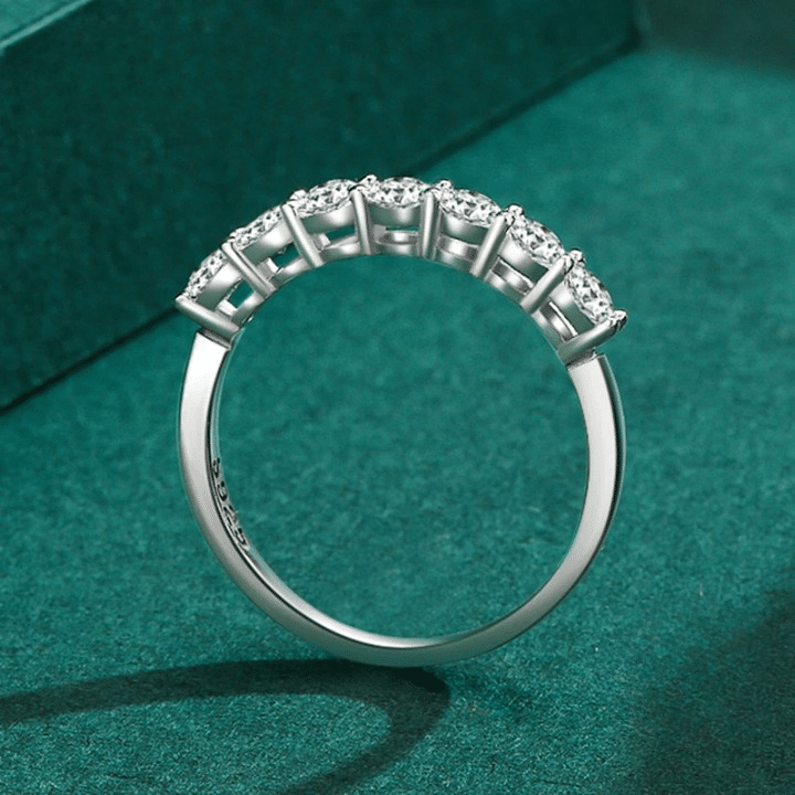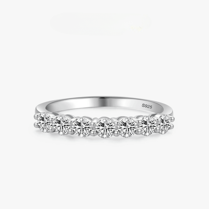 Cette bague brille grâce à un alignement de zircons sertis sur toute la largeur de l’anneau, pour un effet lumineux et raffiné qui se remarque au premier coup d’œil.