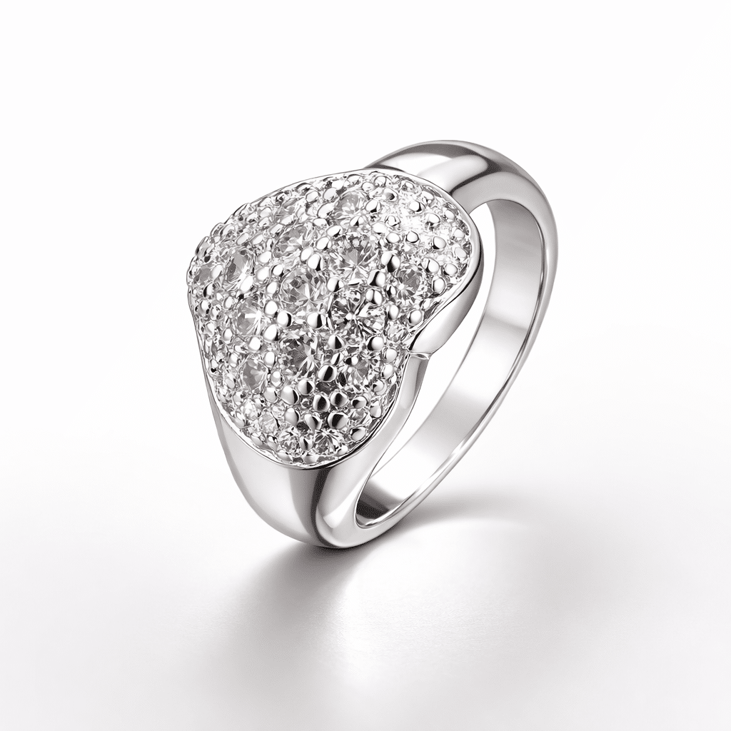 Son large cœur pavé de pierres en zirconium scintillantes attire le regard et capte la lumière à chaque mouvement, pour un rendu glamour et romantique.