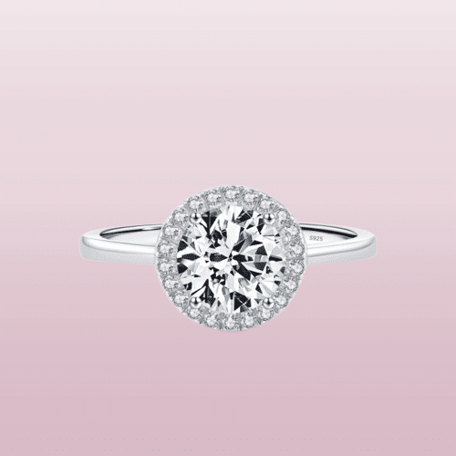 Cette bague de promesse ronde pour femme mise sur un design épuré avec une pierre centrale ronde entourée de petits zircons qui lui donnent un éclat lumineux et délicat.