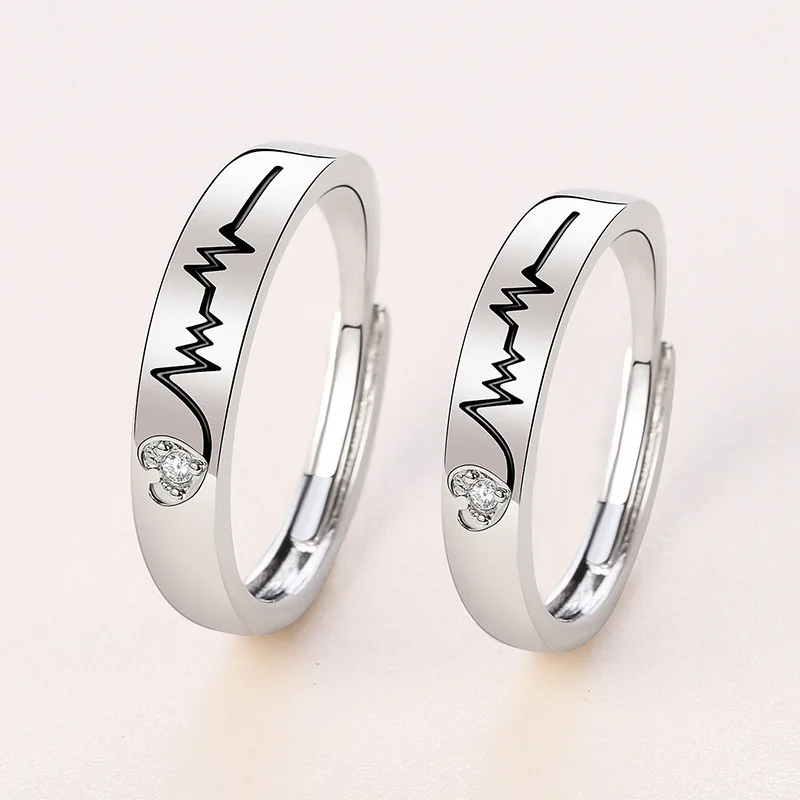 Les bagues de couple électrocardiogramme brillant se portent tous les jours avec un confort agréable et des lignes simples.