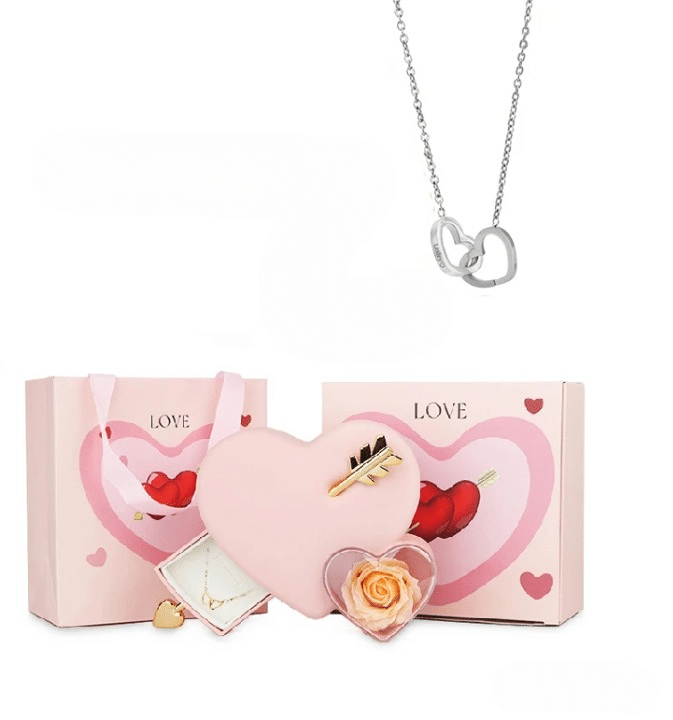La boite coeur rose rose éternelle avec collier gravé est un cadeau complet, prêt à offrir sans rien ajouter.