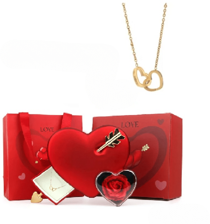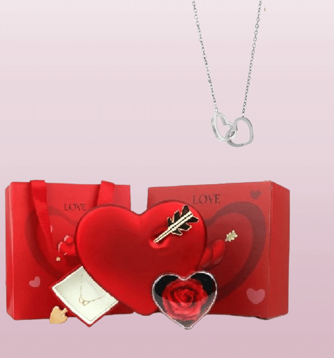 La boite coeur rouge rose éternelle avec collier gravé combine décoration et bijou sentimental dans un seul objet.