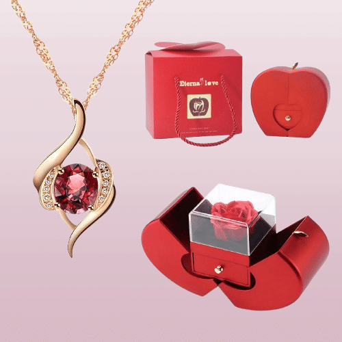 La boite pomme avec rose éternelle et collier rouge combine décoration et bijou dans un seul coffret, parfait pour surprendre lors d’un anniversaire, de la Saint-Valentin ou d’une occasion romantique.