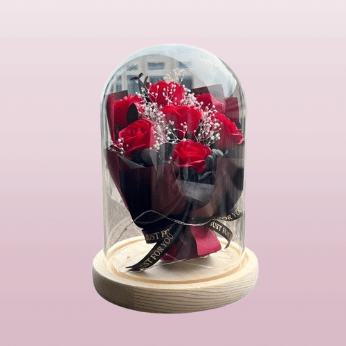 La cloche protectrice met en valeur les roses tout en gardant l’ensemble intact et présentable sans effort de votre part.