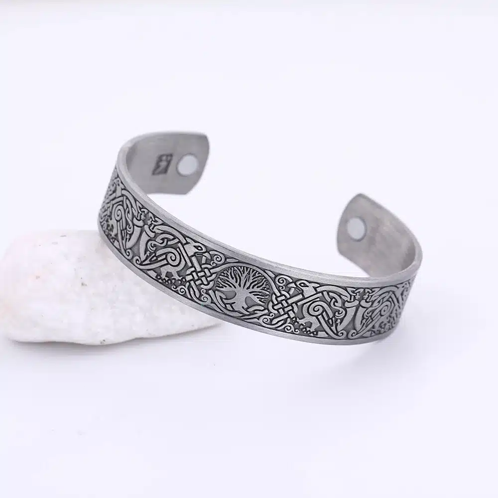 Au centre, un médaillon arbre de vie (Yggdrasil) symbolise force et lien, parfait pour un porté à deux.