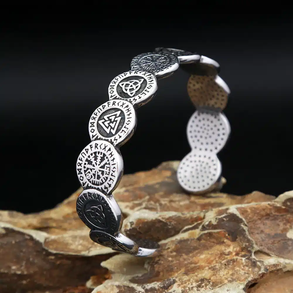 Manchette épaisse gravée de symboles vikings et runes nordiques qui apportent un style unique et plein de caractère.