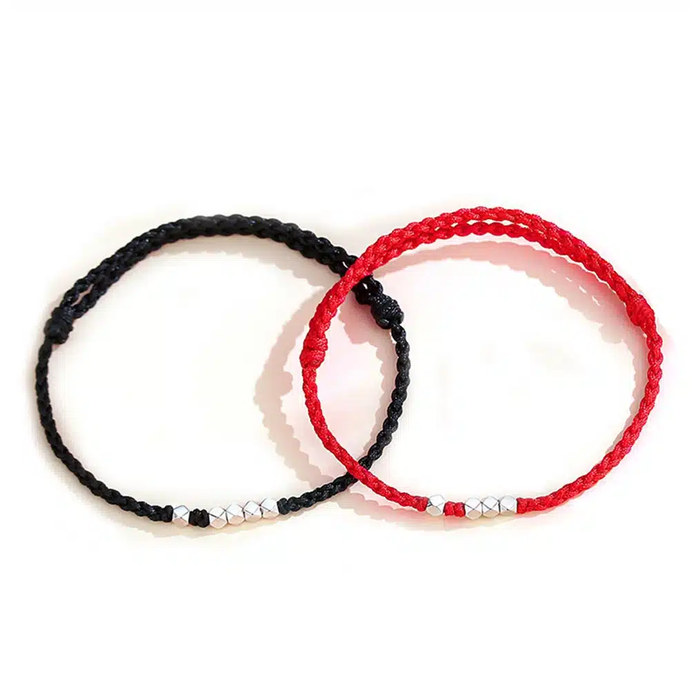 Ce bracelet breloque brésilien couple vous offre deux bracelets tissés à la main avec un cordon résistant, l’un en noir et l’autre en rouge, pour représenter deux énergies qui se complètent.