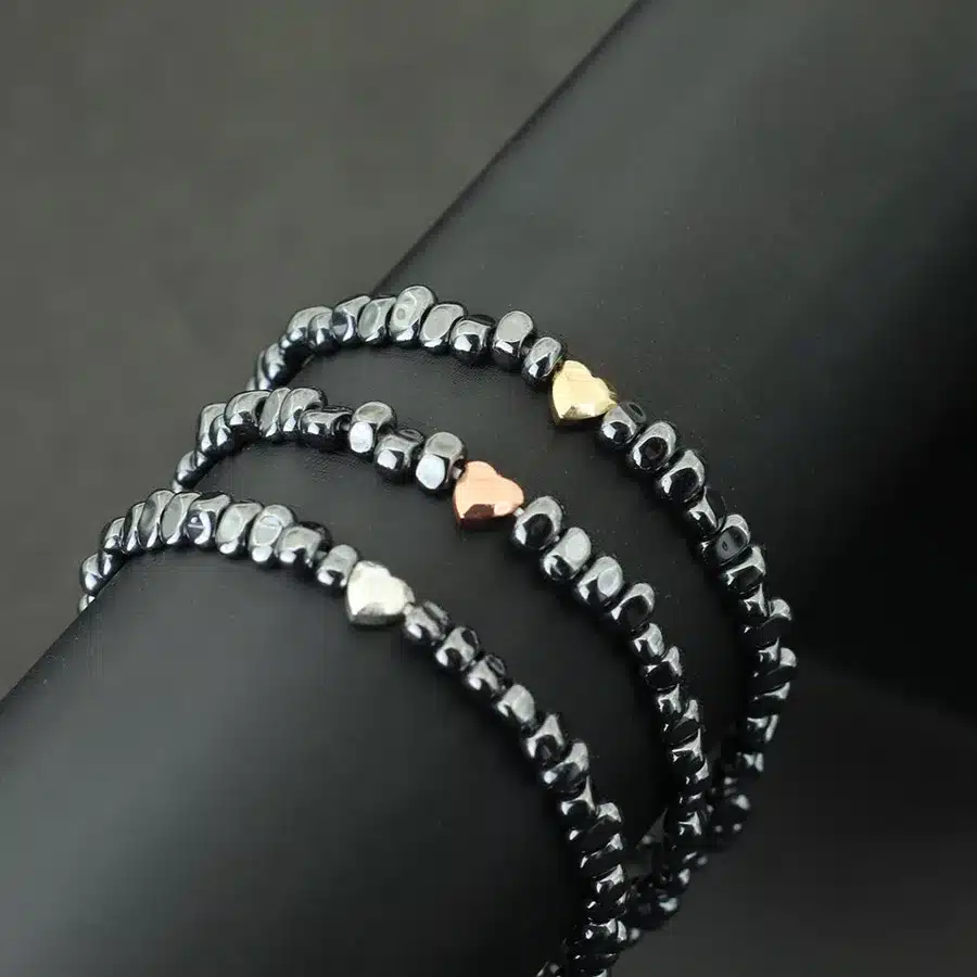 Le cœur est disponible en trois finitions au choix : doré, argent ou rose gold, ce qui permet d’adapter le bracelet couple amour pierres noires au style et aux préférences de chacun.