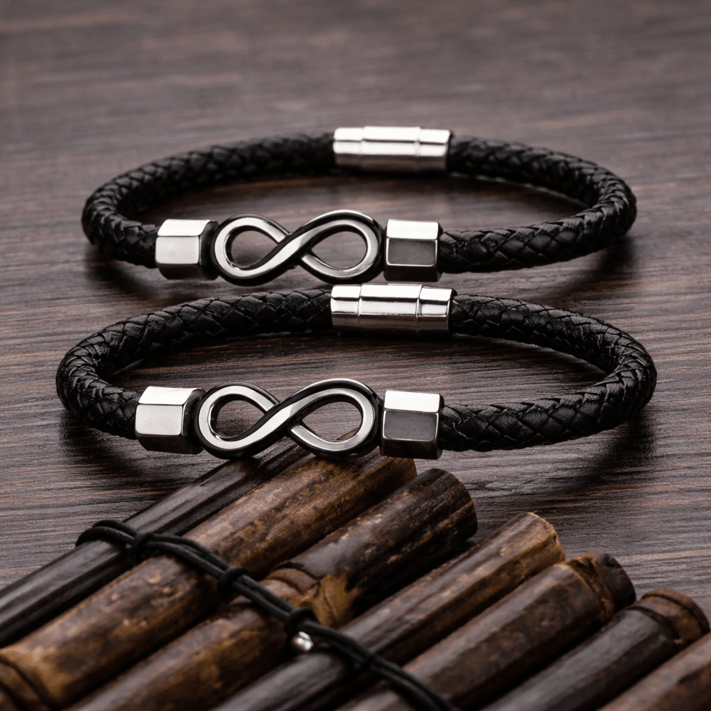 Ce bracelet couple cuir infini convient aussi bien aux hommes qu’aux femmes grâce à son style minimaliste et mixte.