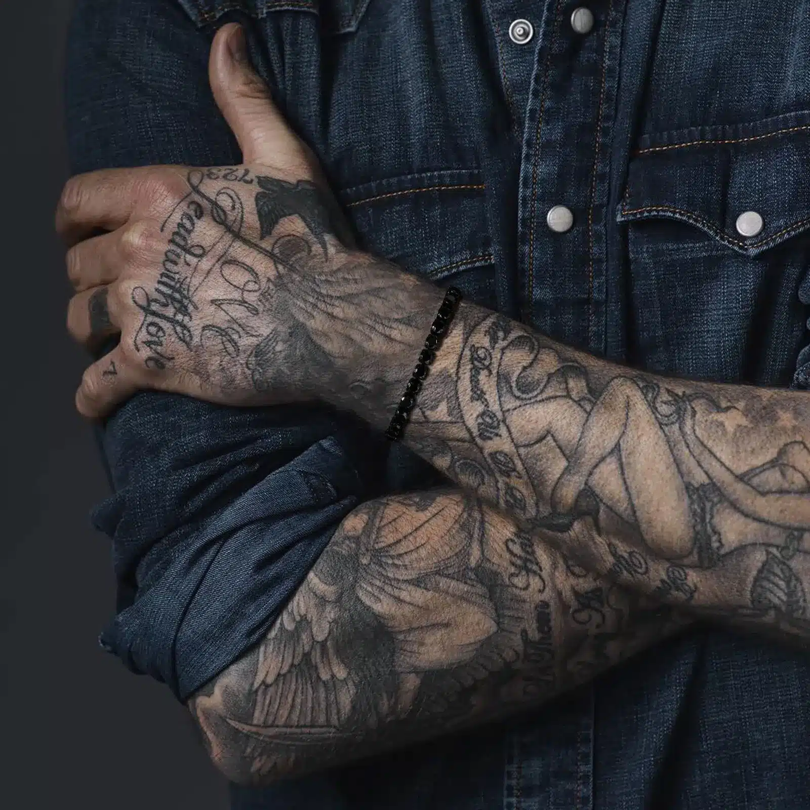 Le bracelet couple fin noir se porte seul pour un look simple, ou en accumulation avec une montre ou d’autres bracelets pour un style plus marqué.
