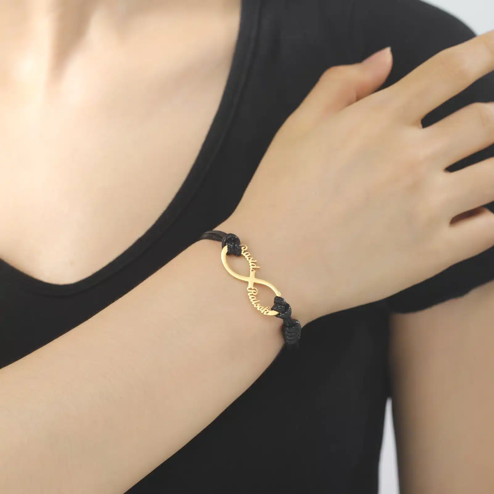 Le bracelet couple infini argent et doré personnalisé est fin et discret, facile à associer avec d’autres bijoux ou à porter seul.