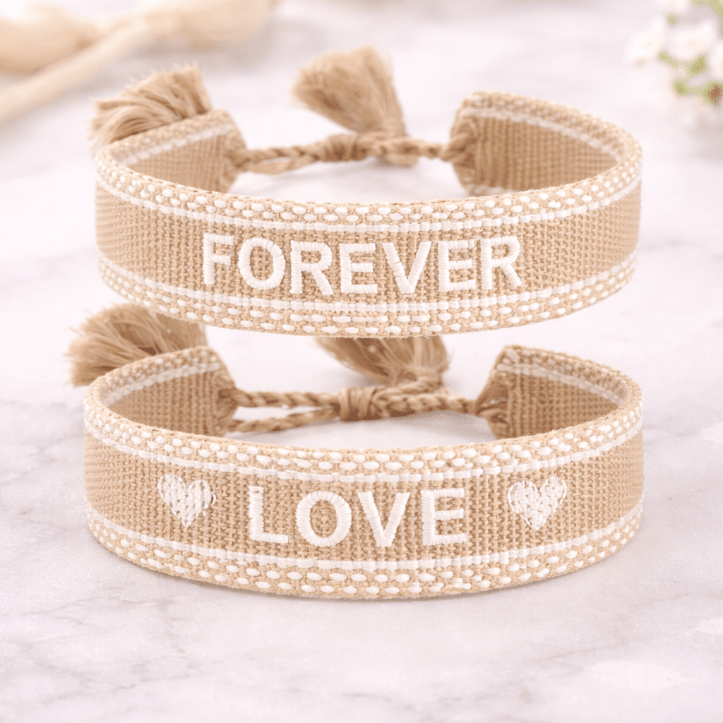 Le bracelet couple love mise sur un tissu tressé agréable au poignet, avec un rendu léger et confortable qui se fait oublier.