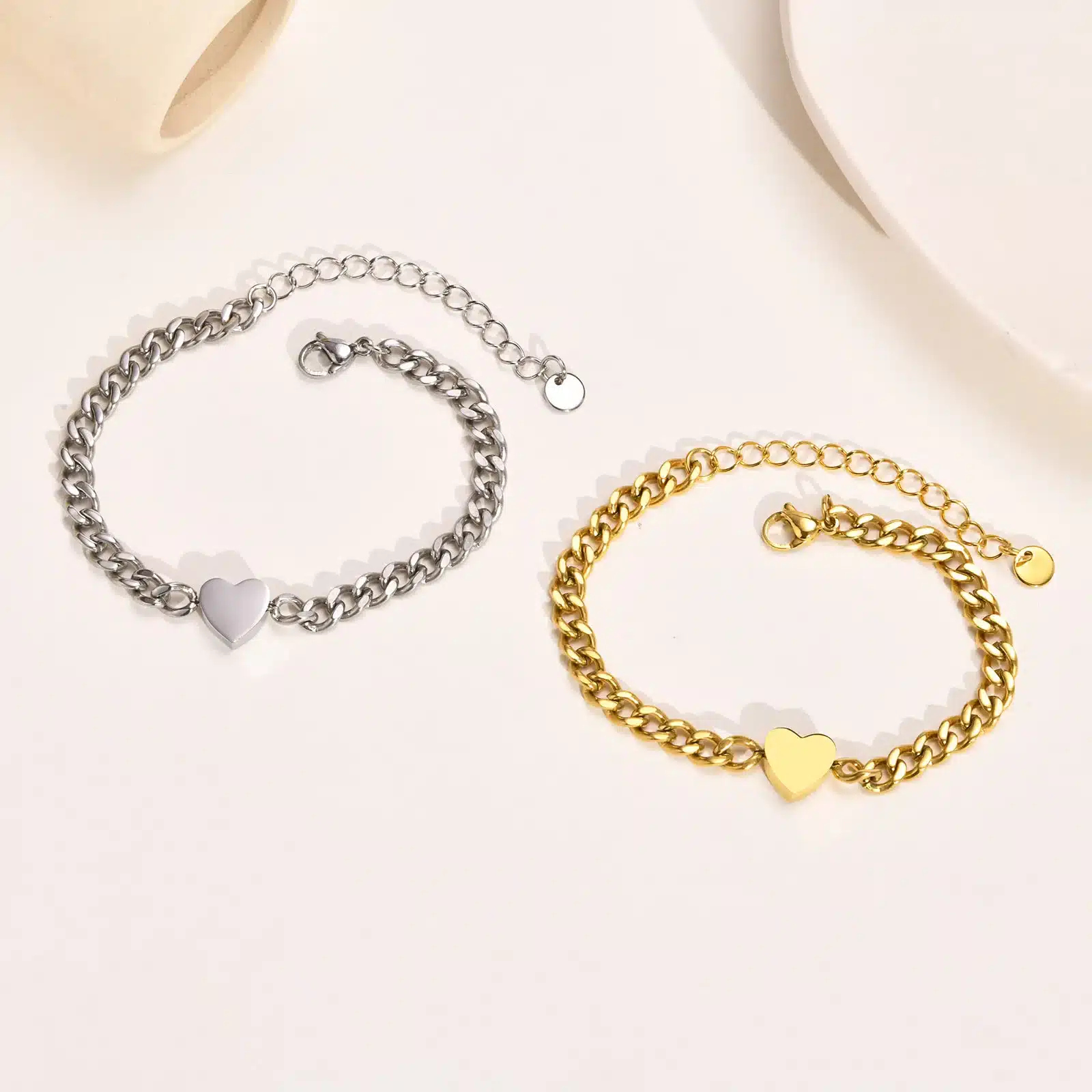 Un petit pendentif cœur sobre orne chaque bracelet couple luxe, un clin d’œil discret à votre relation.