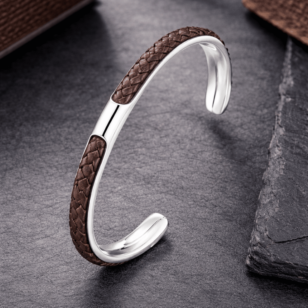 La partie métal apporte une ligne nette, et le cuir tressé ajoute une texture qui change tout, sans faire trop.