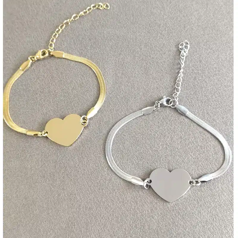 Chaque bracelet est orné d’un médaillon cœur lisse, au design épuré et délicat.