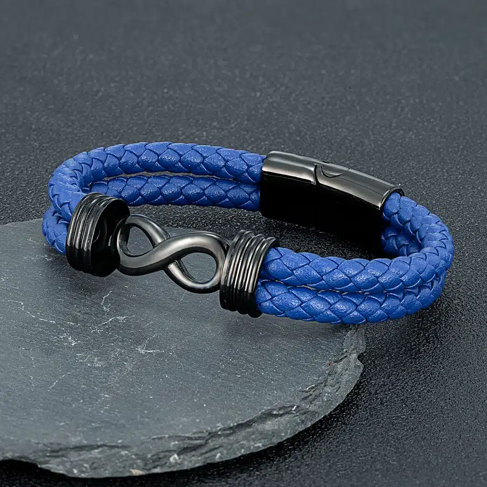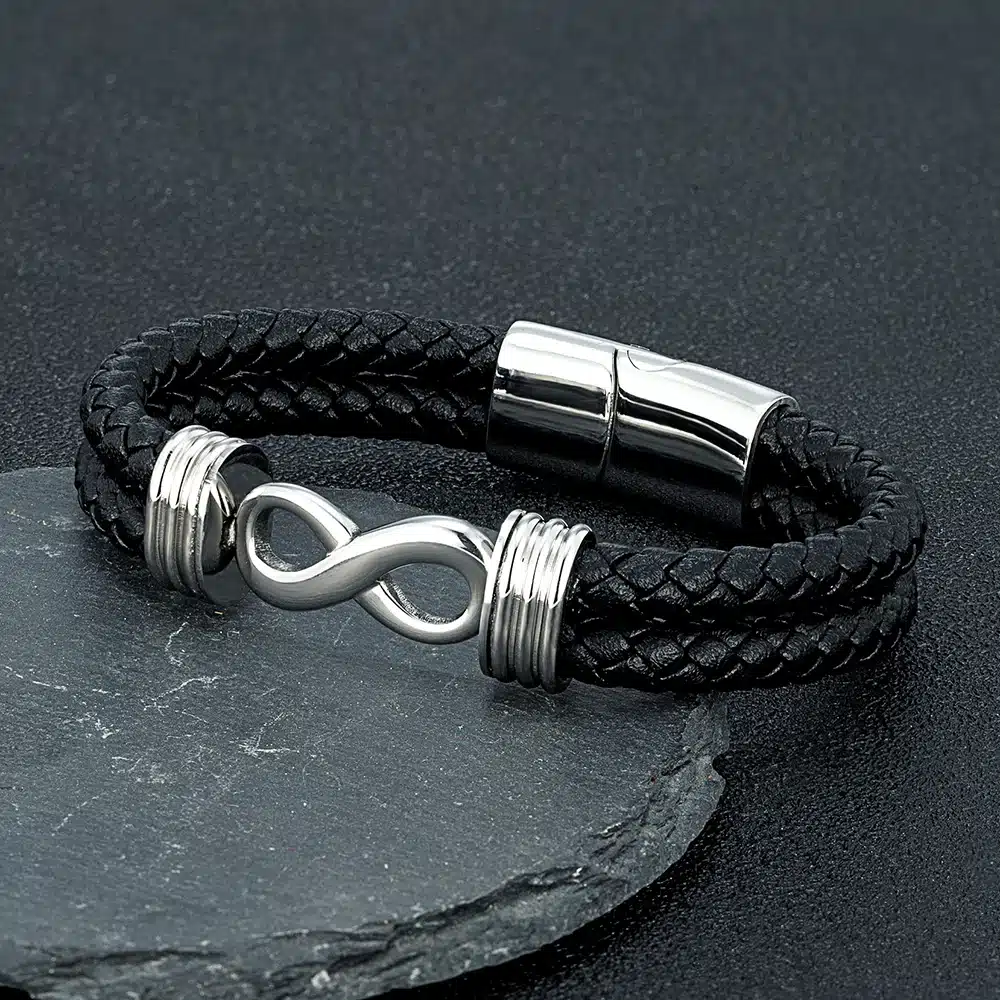 Le bracelet couple signe infini cuir combine un design moderne et symbolique avec une finition soignée.