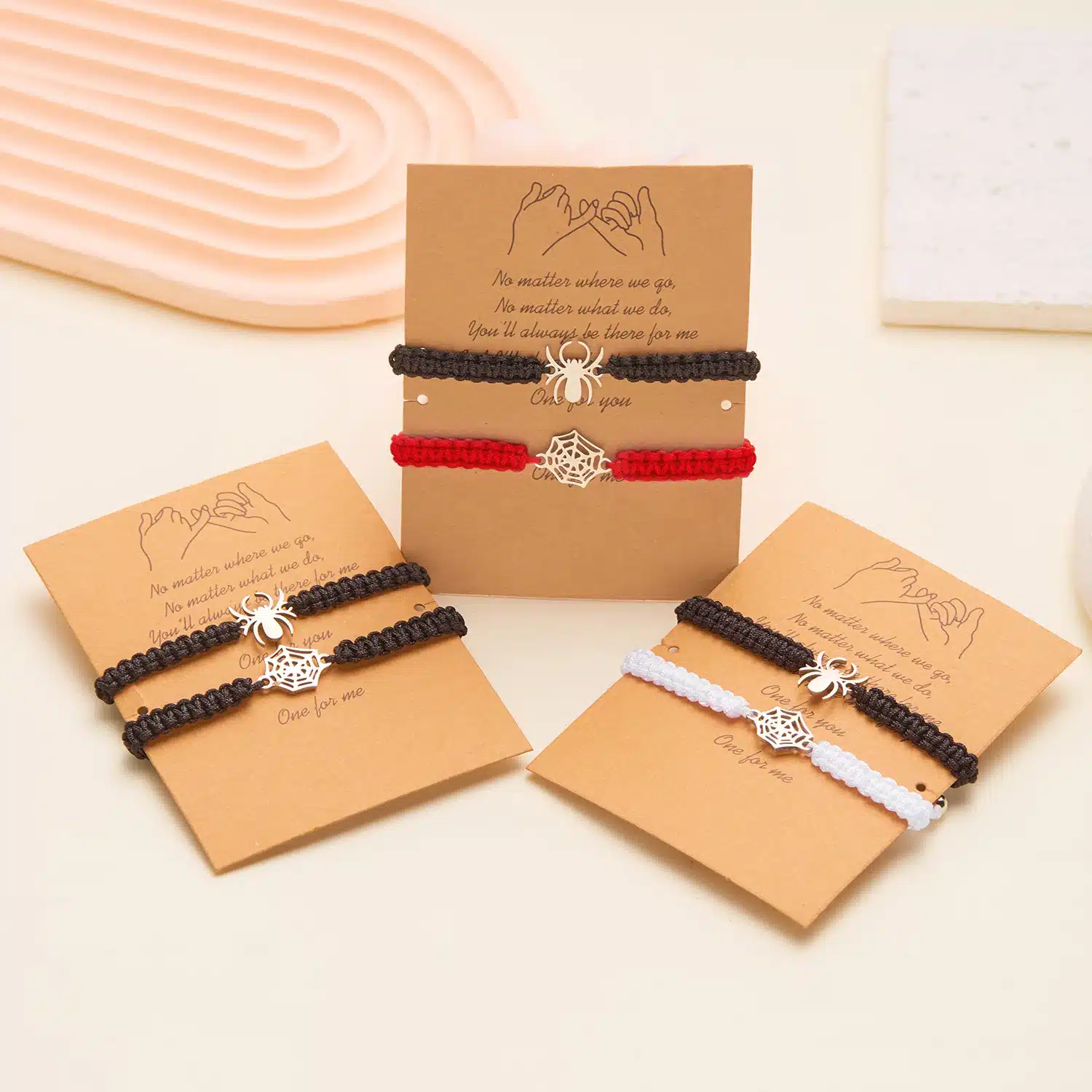 Le bracelet couple toile d’araignée affiche une taille ajustable, ce qui permet de l’adapter à différents poignets.