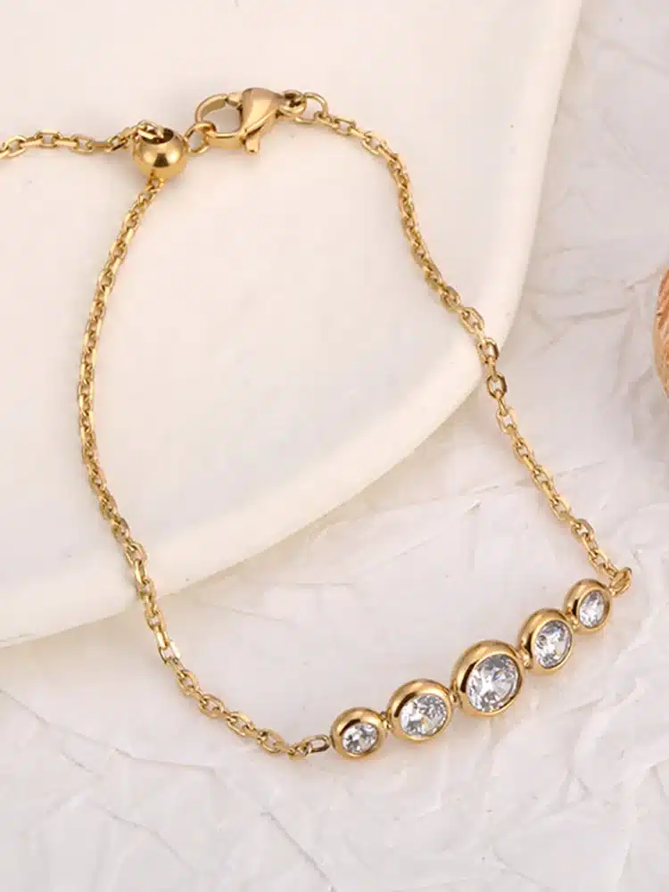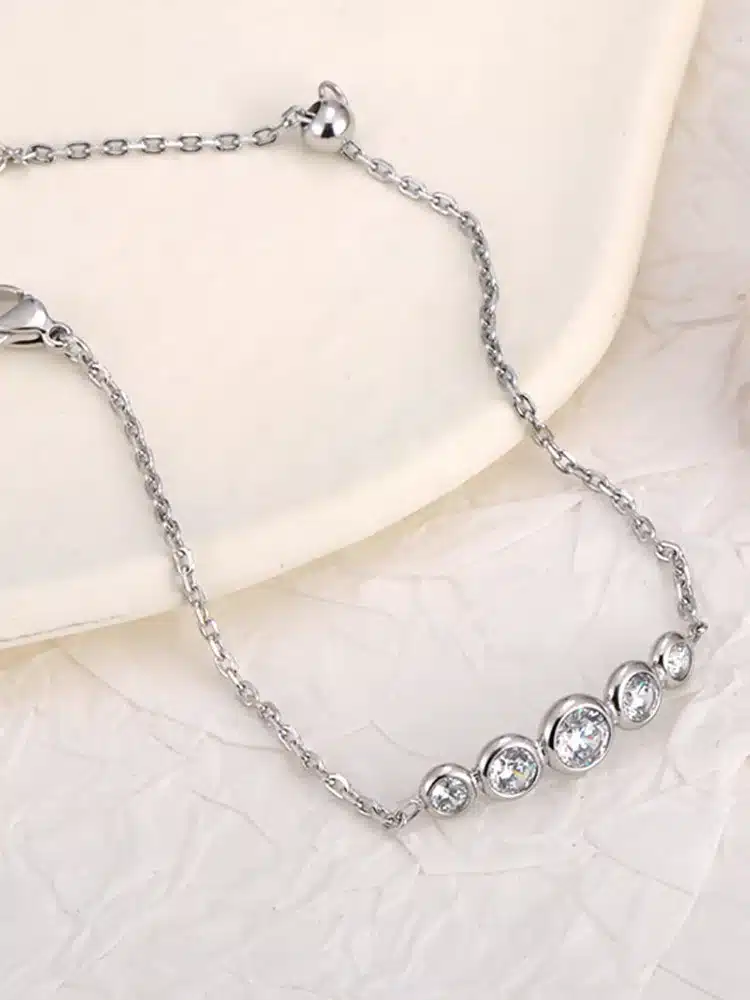 Les pierres en zirconium brillantes réparties sur la chaîne apportent un éclat subtil et lumineux, sans être trop voyant.