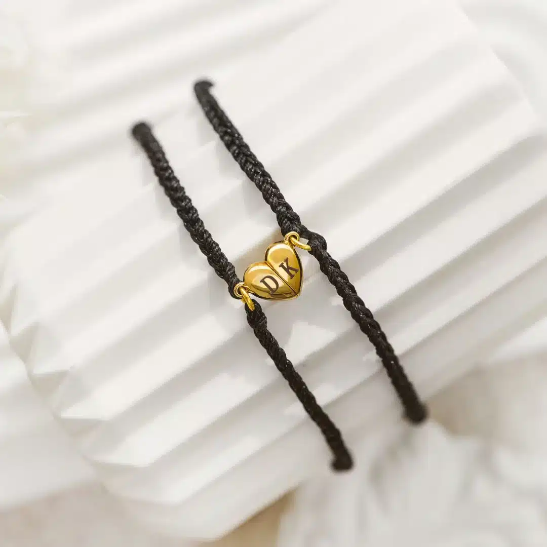Chaque charm porte la gravure de l’initiale de votre partenaire, rendant ce bijou unique et personnel. Le cordon résistant assure un confort optimal pendant toutes vos activités.