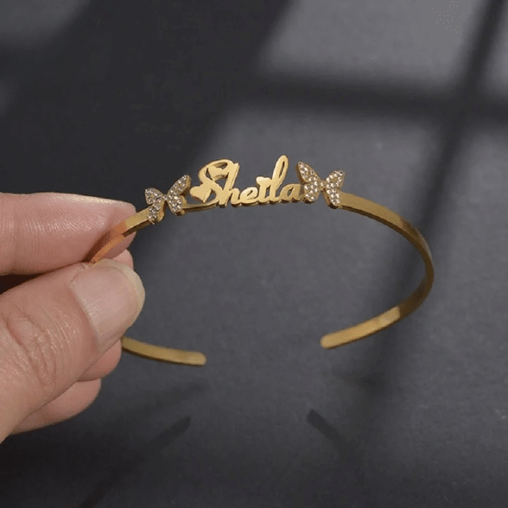 Le bracelet manchette personnalisée papillons femme est fabriqué en acier inoxydable, un matériau solide qui résiste bien au quotidien sans ternir.