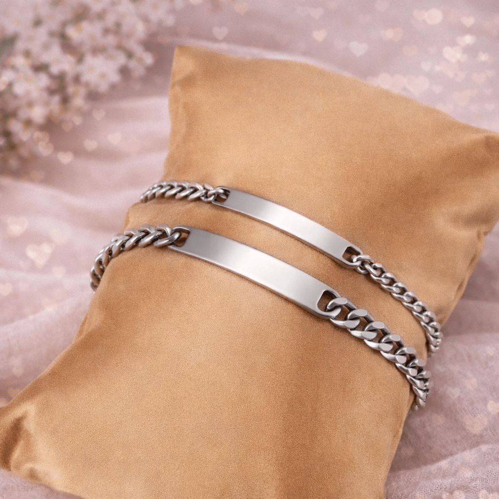 Ce lot de deux bracelets gourmettes en acier inoxydable et plaqué argent vous offre un symbole durable de votre union.