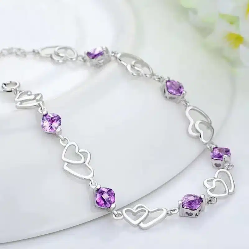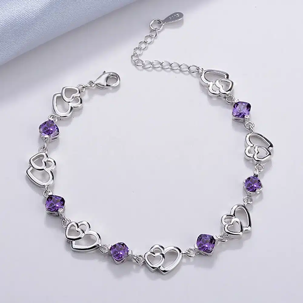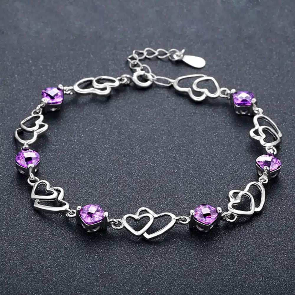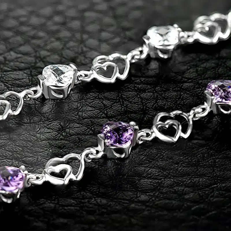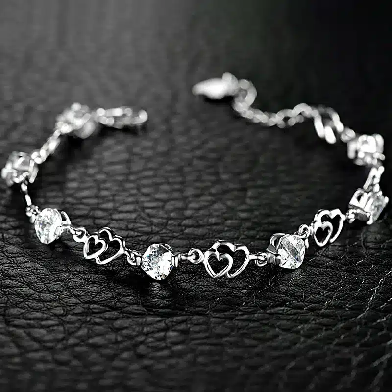 Les pierres en zirconium captent la lumière et donnent au bracelet un éclat délicat et lumineux, mis en valeur par la monture argentée.