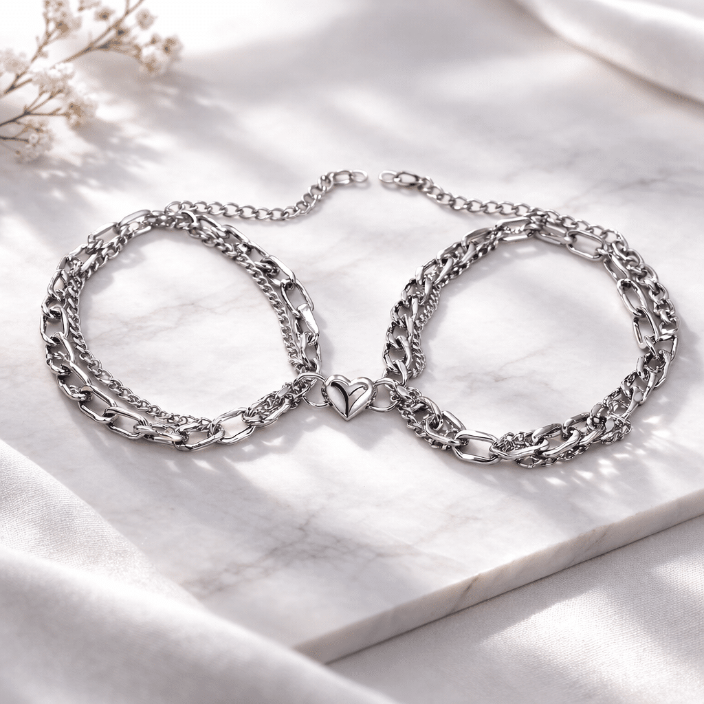 Ces bracelets couple aimantés double chaîne sont parfaits comme cadeau de couple, pour marquer une relation ou offrir un souvenir affectif qui se porte et se voit tous les jours.