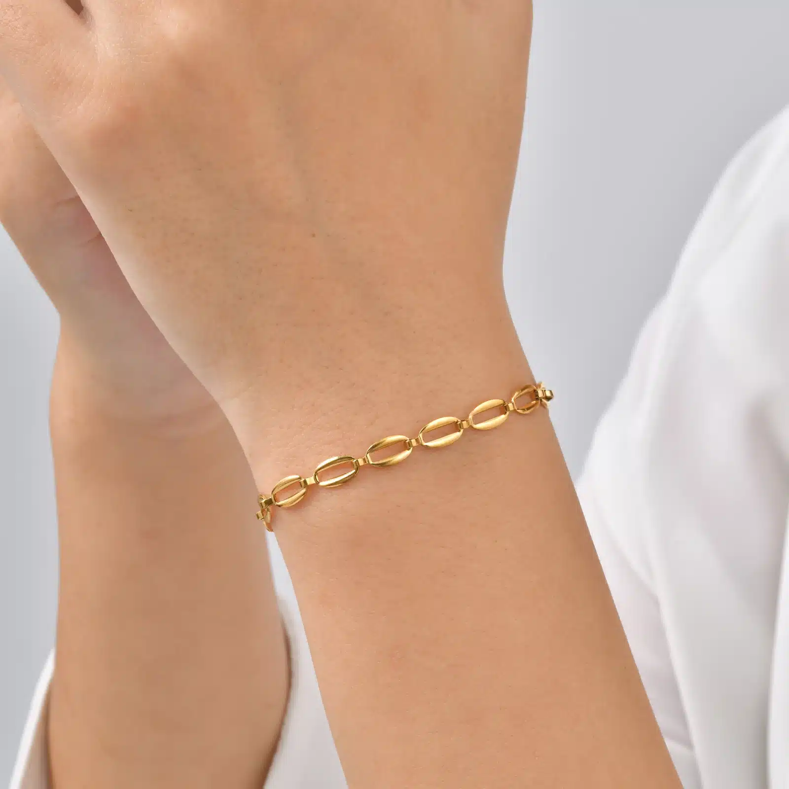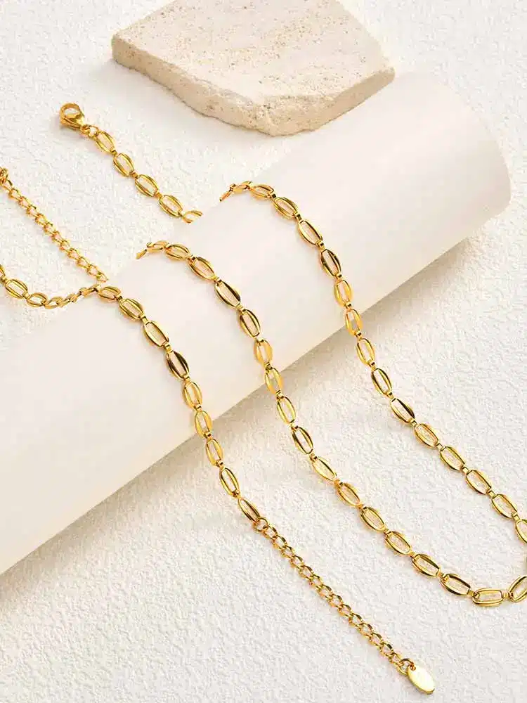 Les maillons allongés captent la lumière et créent un bijou à la fois simple, tendance et intemporel.
