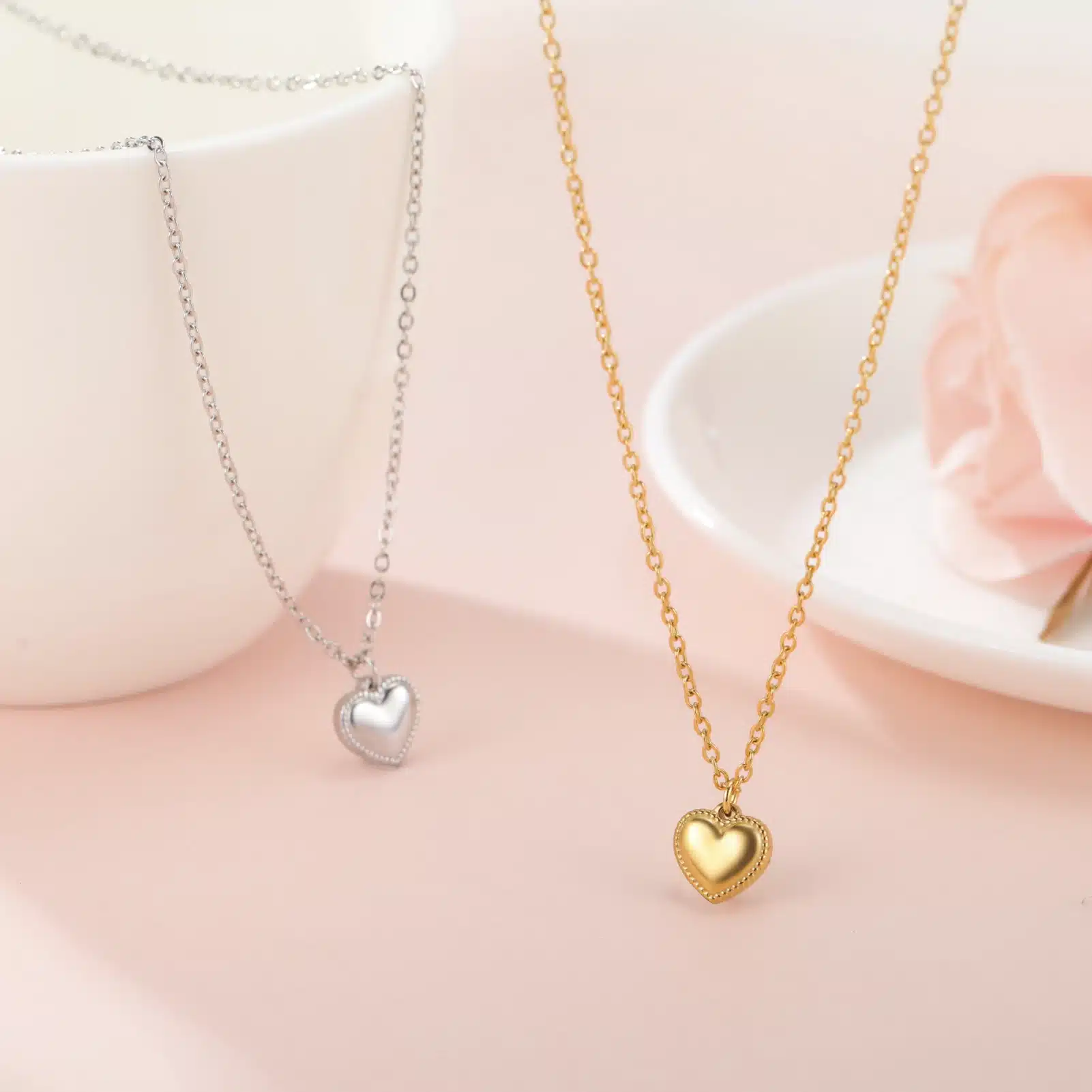 Chaîne 45 cm avec un mini pendentif cœur pour un rendu discret qui habille le cou sans en faire trop.