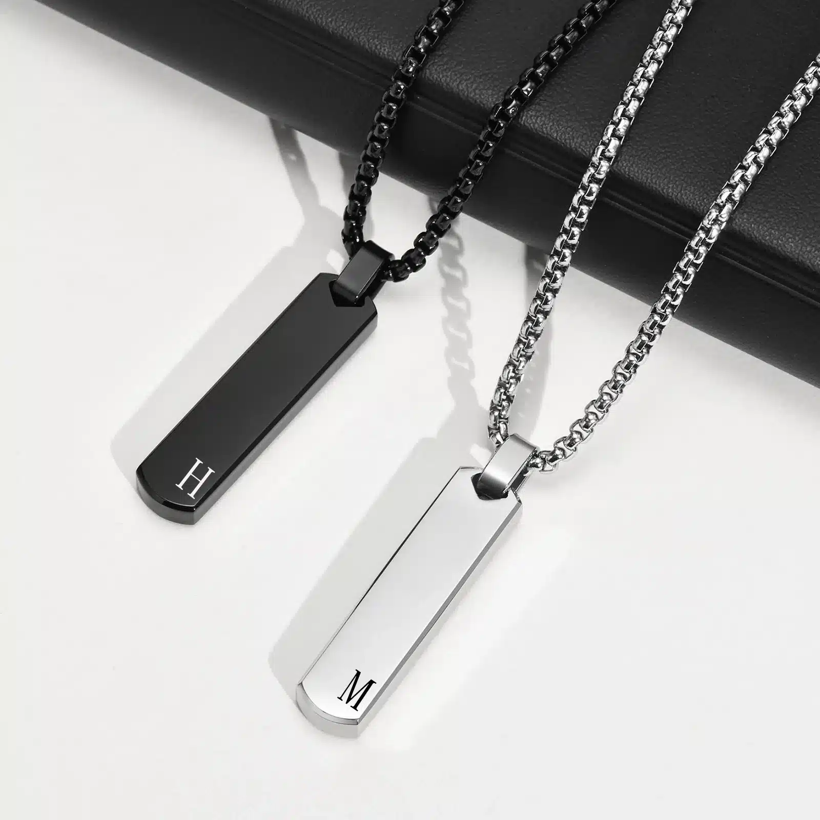 Chaque pendentif mesure 4 x 1 cm et présente une forme de barre minimaliste qui peut être gravée avec une initiale pour ajouter une touche personnelle et unique.