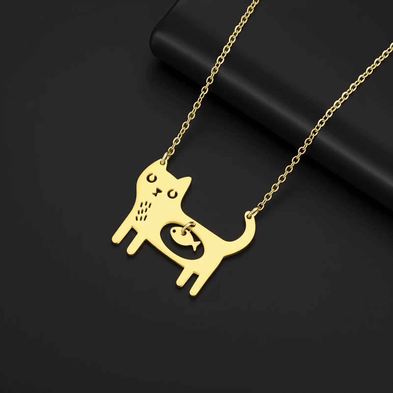 Le collier couple chat poisson mêle simplicité et touche ludique pour un rendu moderne et facile à porter au quotidien.