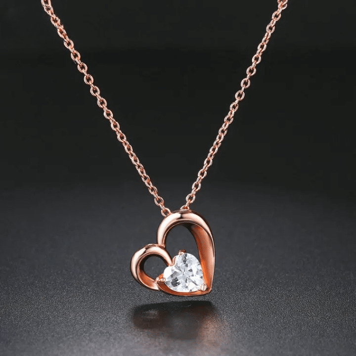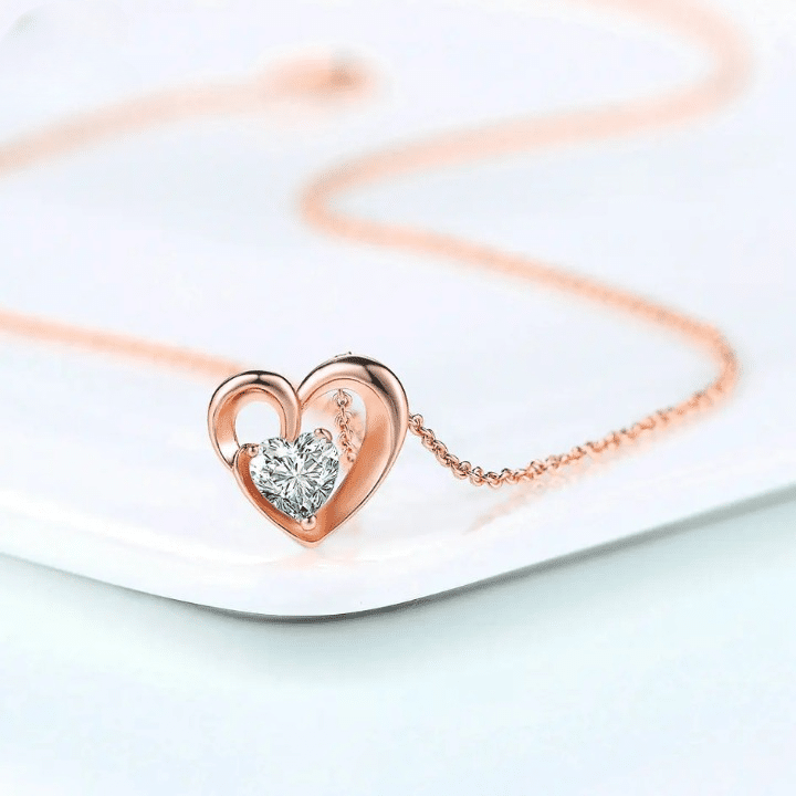 Le collier couple coeur rose gold pour femme garde un message d’attachement et de complicité, tout en restant léger.