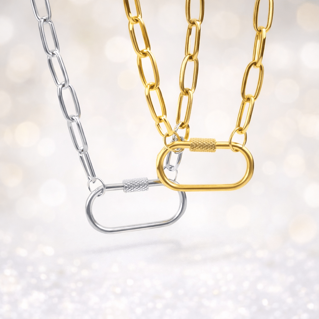 • Design moderne avec maillon mousqueton symbolique.
