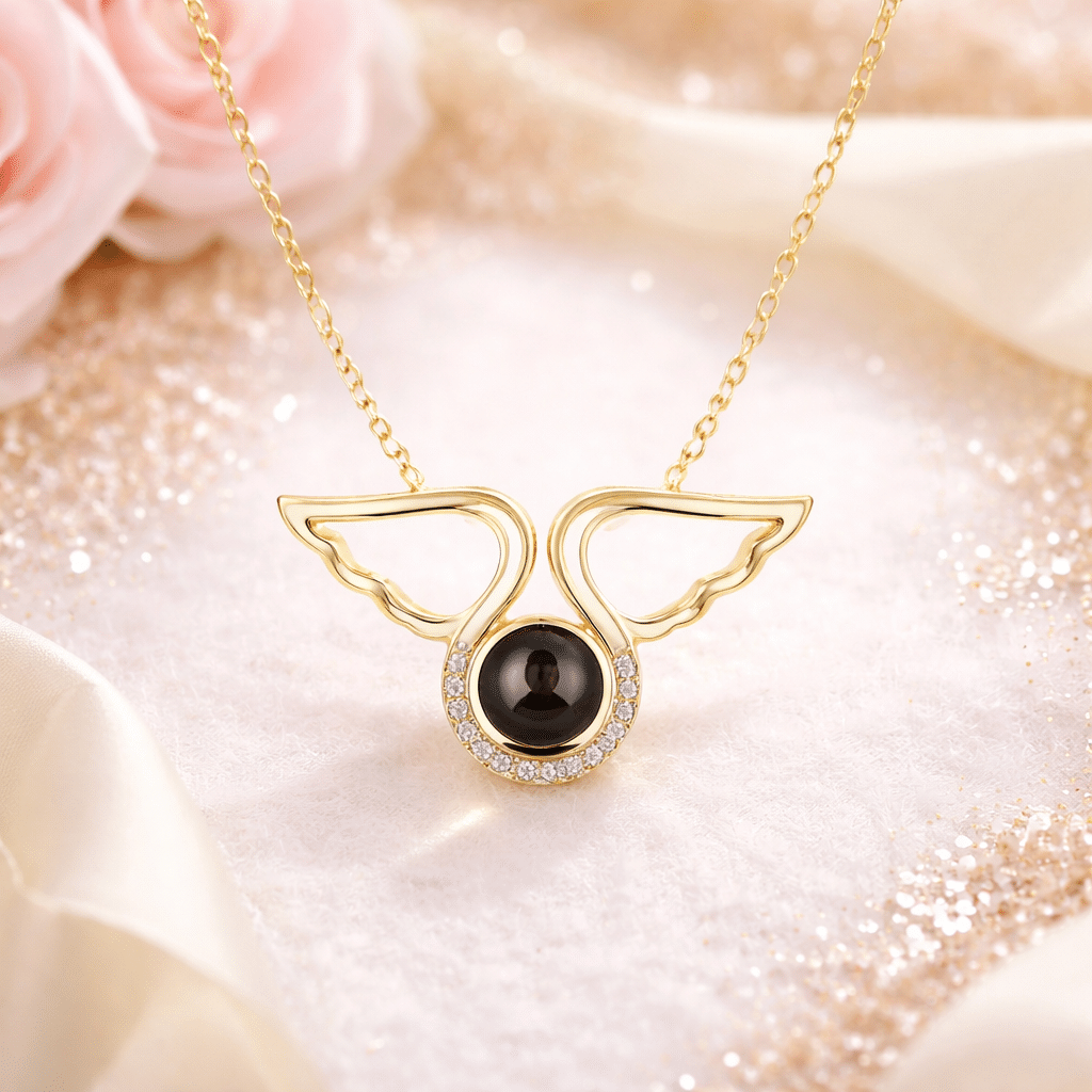 Ce collier couple femme photo projection ange est vendu à l’unité et fait un cadeau original et chargé d’émotion, idéal pour la Saint-Valentin, un anniversaire ou pour marquer un lien fort.