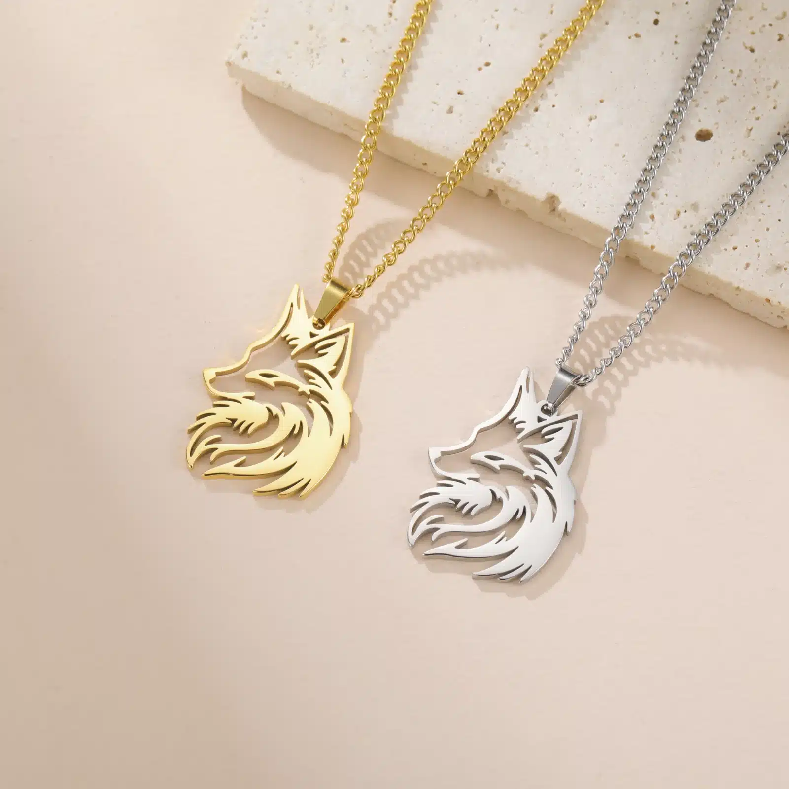 Ces colliers couple loup argent et doré se portent facilement tous les jours, que vous soyez ensemble ou séparés.