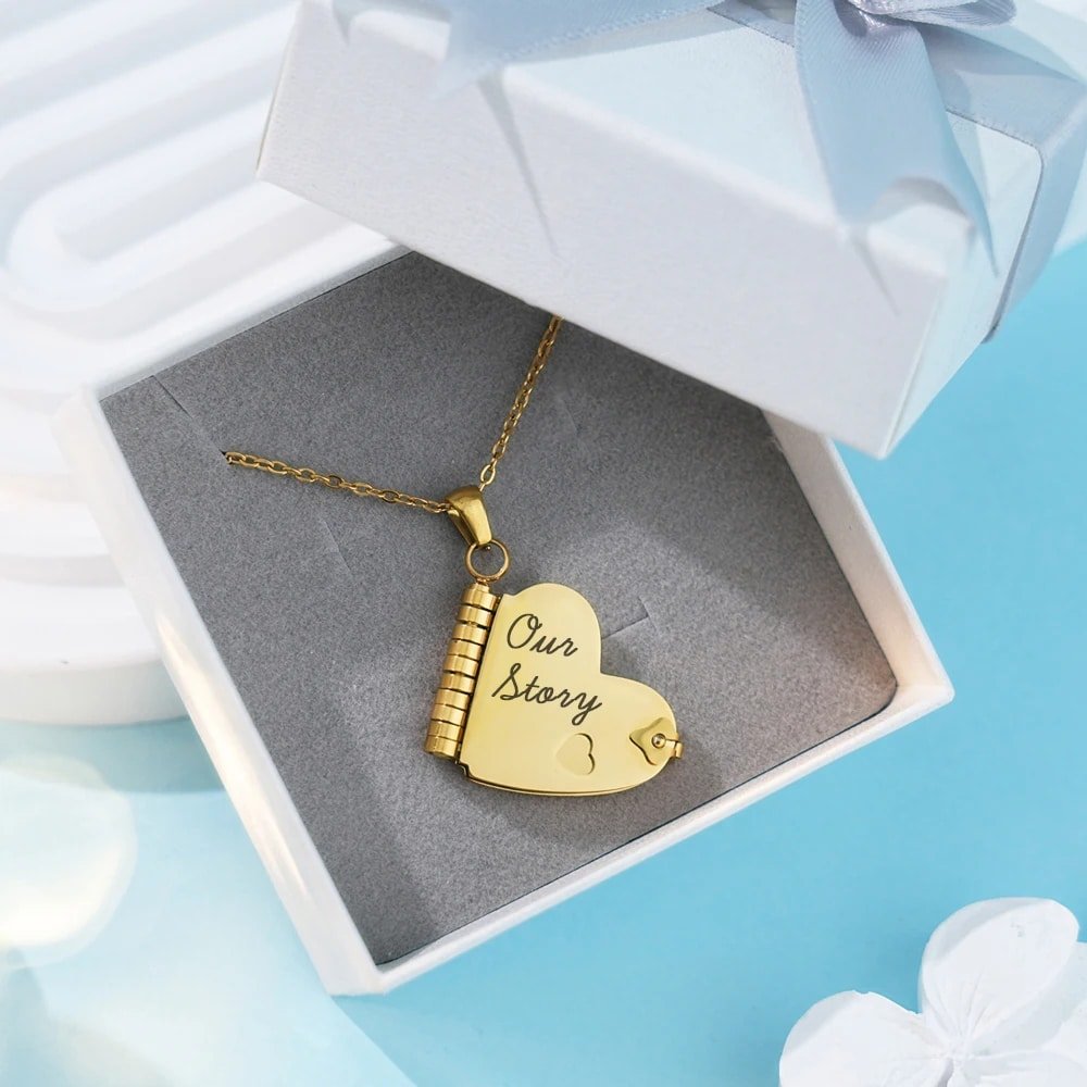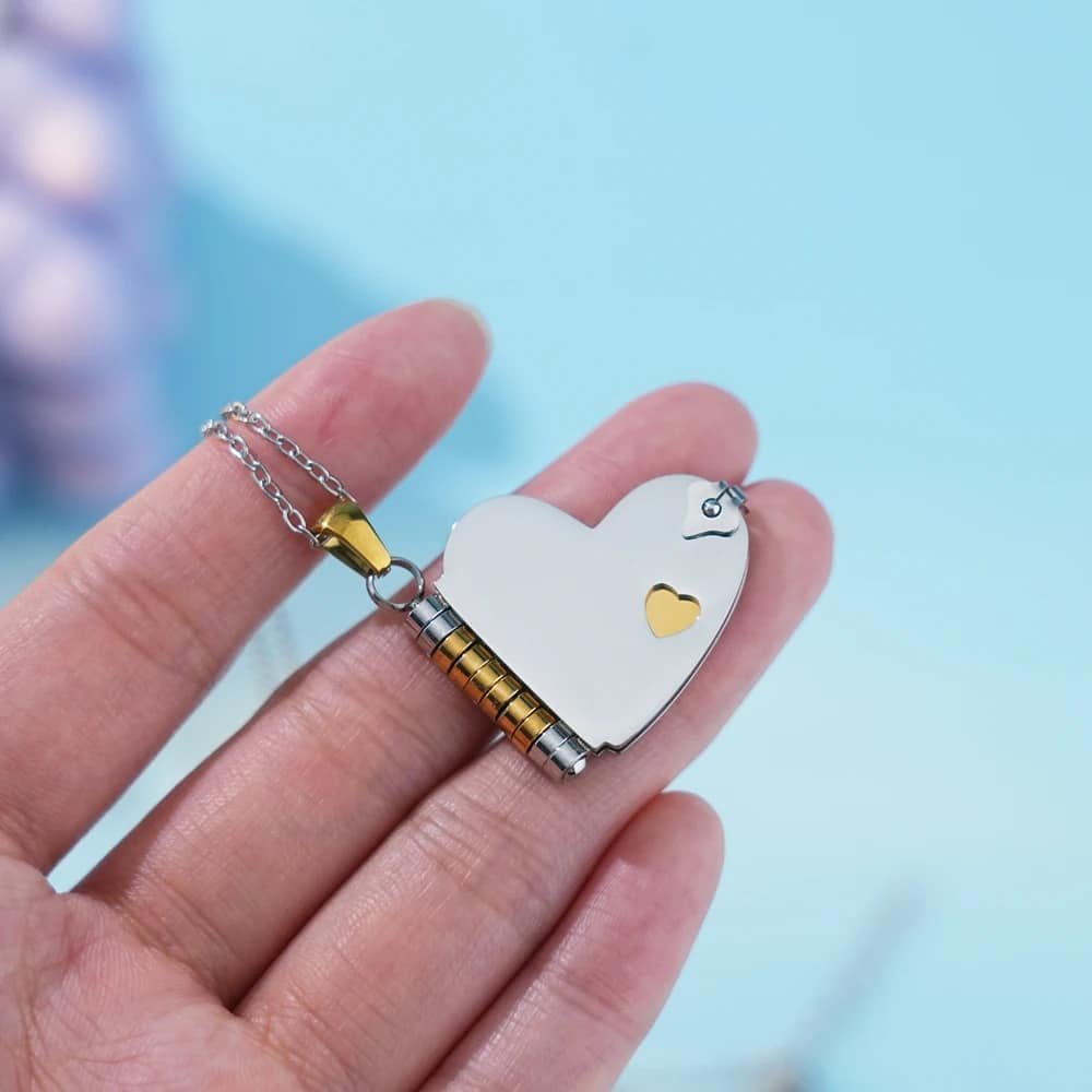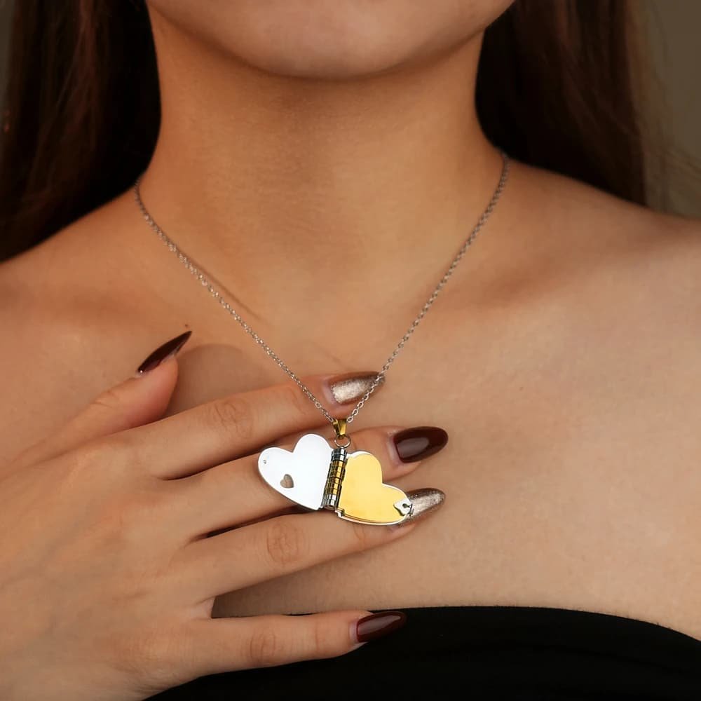 Le pendentif fait toute la différence : un cœur articulé au format 2,4 x 3,2 cm, qui s’ouvre comme une petite surprise.