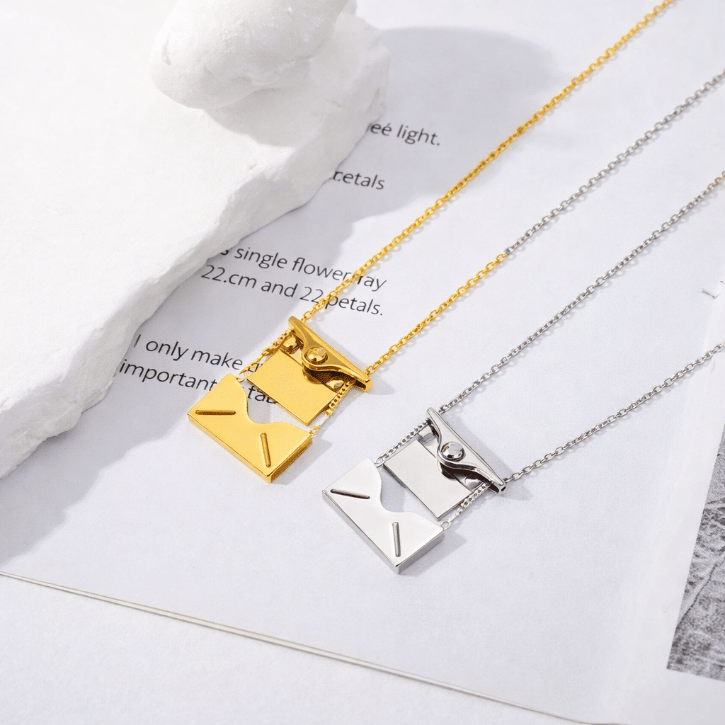 Le collier couple personnalisé enveloppe femme est vendu à l’unité et pensé pour celles qui veulent un bijou simple, mais plein de sens.