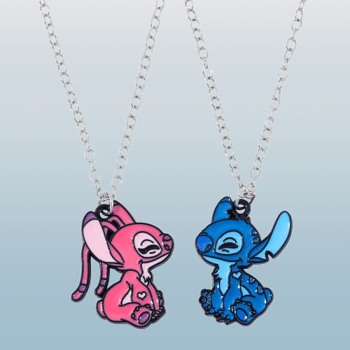 Ce qui rend le collier couple Stitch unique, c’est que les pendentifs s’emboîtent quand vous réunissez les deux colliers, créant un symbole de complicité et d’amour.